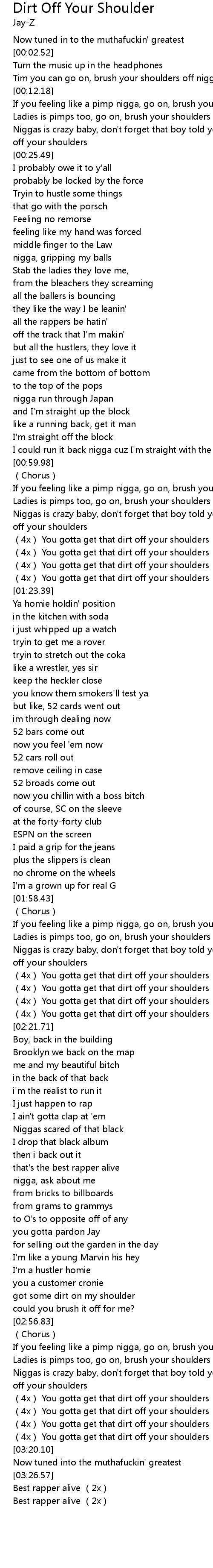 | [03:17.21] | (4x) You gotta get that dirt off your shoulders (4x) |