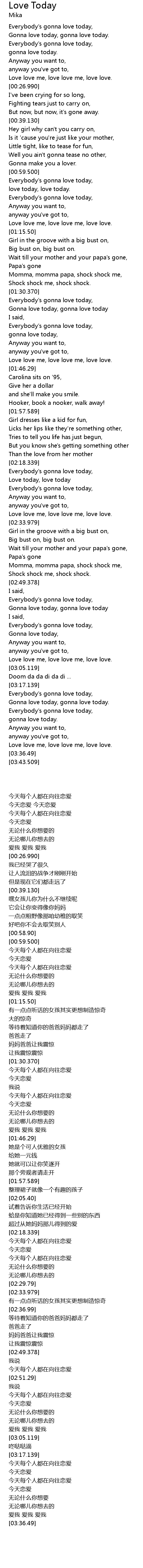 Gonna love today, gonna love today. |