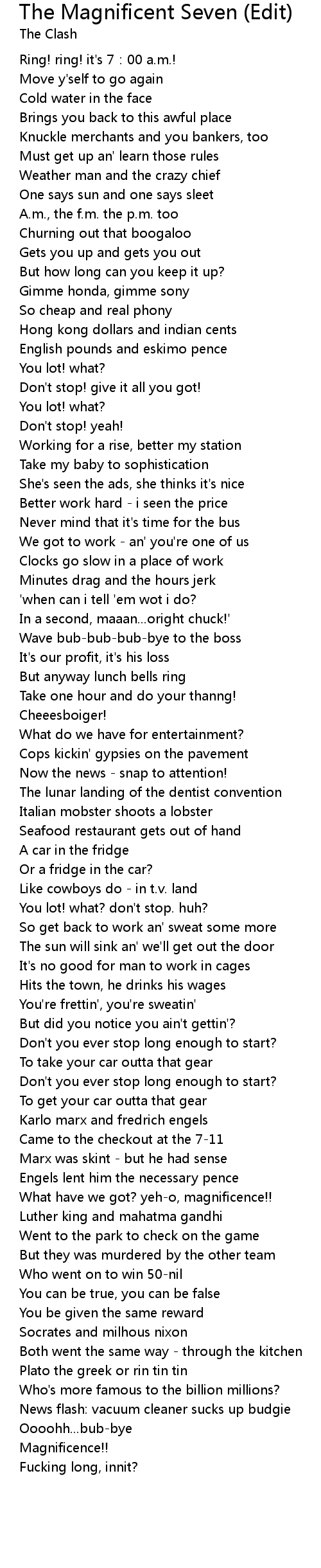 | Song | The Magnificent Seven (Edit) |