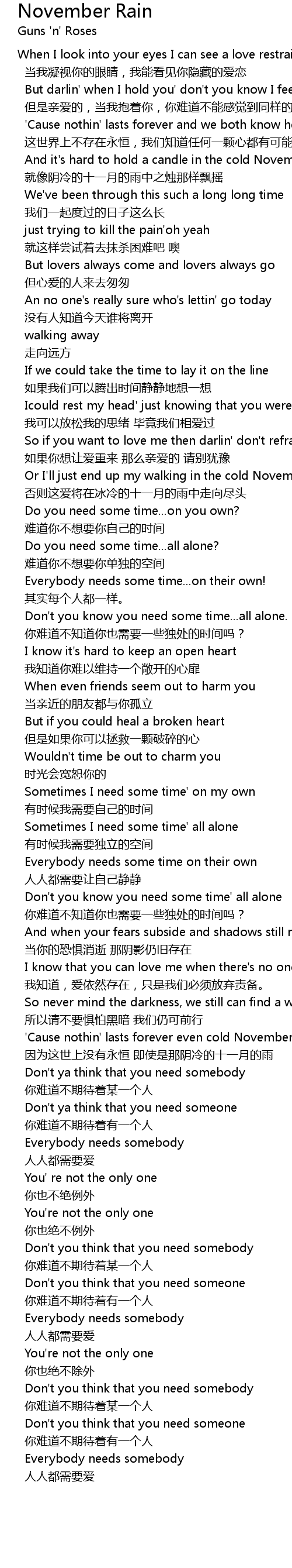 | 'Cause nothin' lasts forever even cold November rain | |
