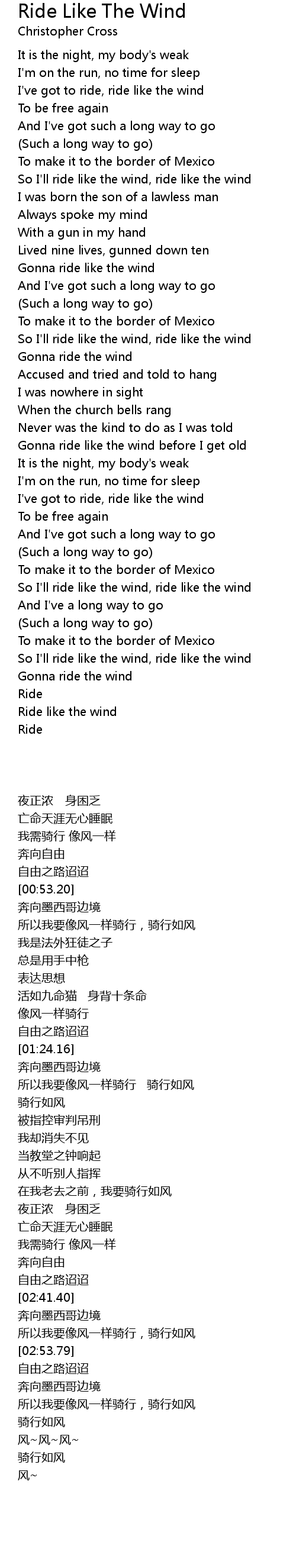 So I'll ride like the wind, ride like the wind |