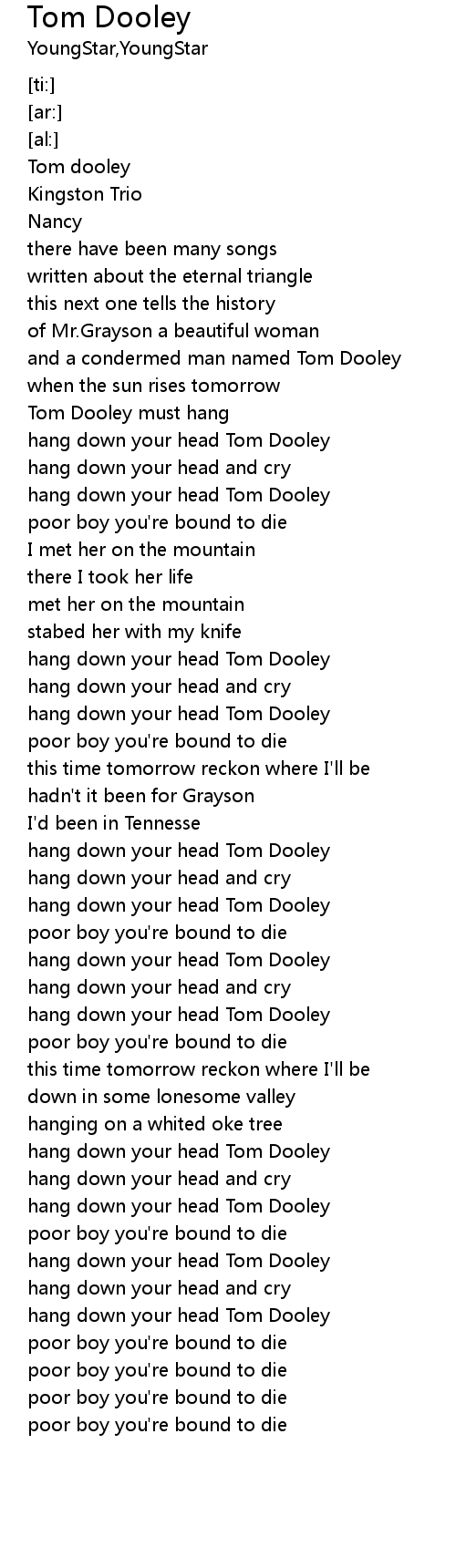 | [00:25.09] | Tom Dooley must hang |