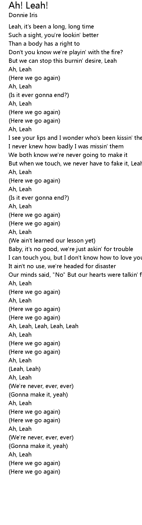 Our minds said, "No" But our hearts were talkin' faster, Leah |