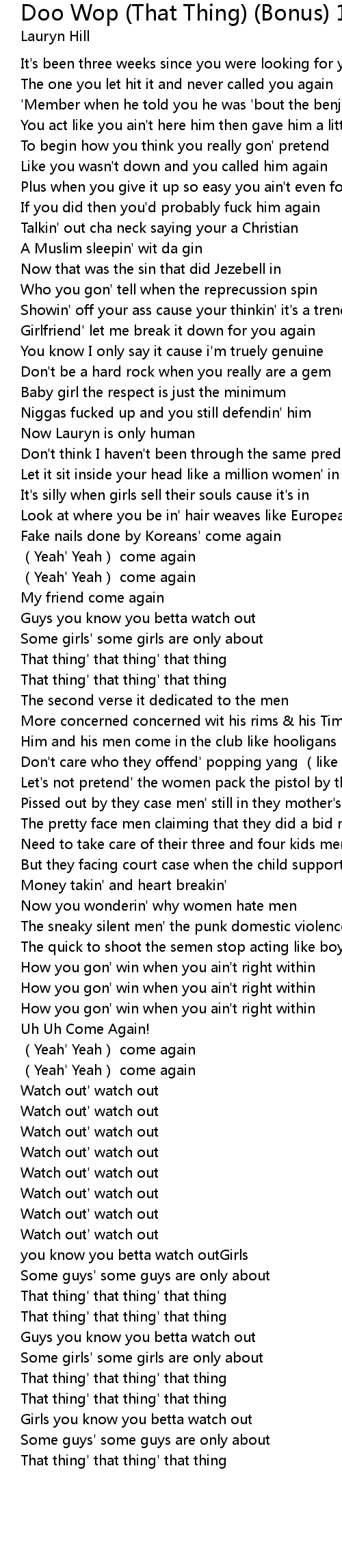 | Song | Doo Wop (That Thing) (Bonus) 100 |