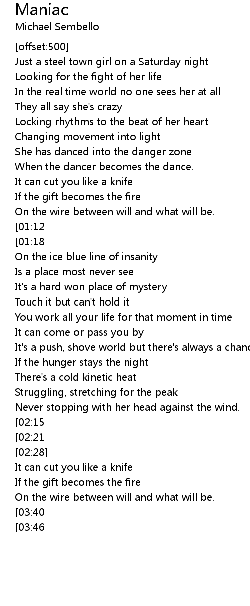 She's a maniac--maniac on the floor |