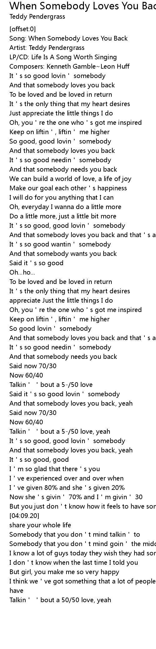 | [00:01.29] | Song: When Somebody Loves You Back |