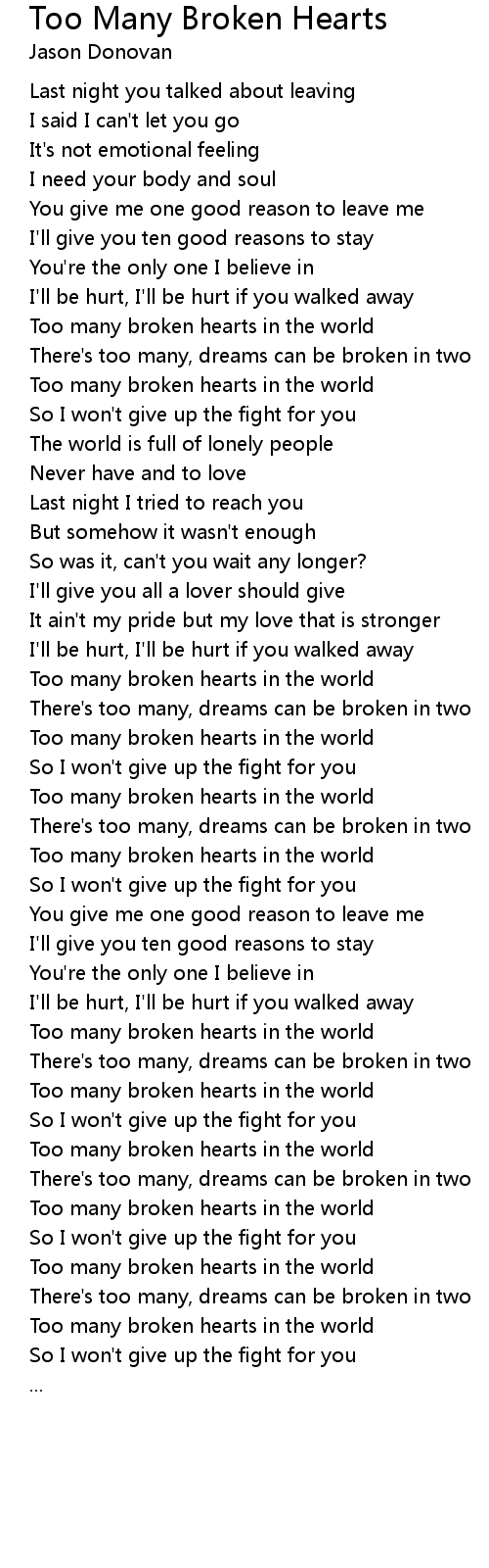 Too many broken hearts in the world |