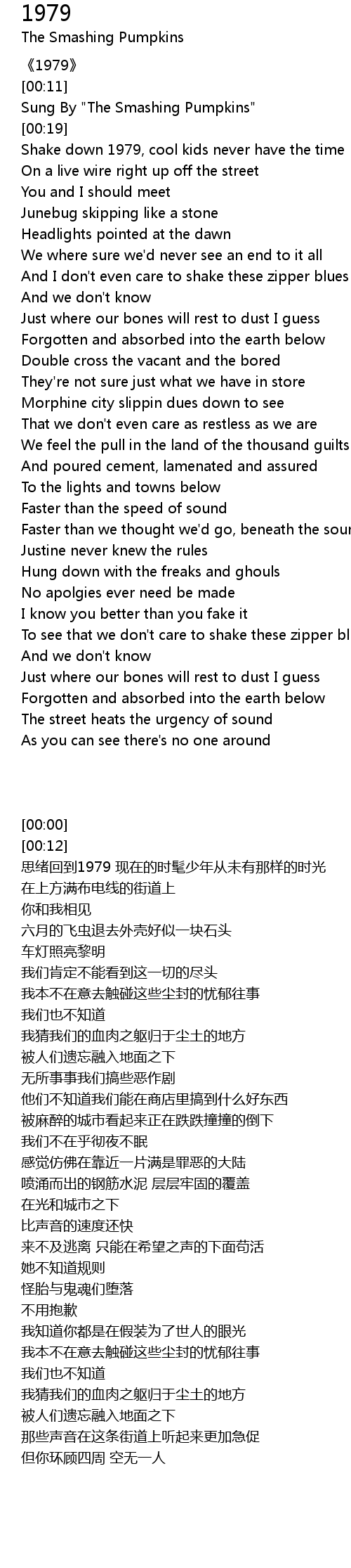 | [00:12] | Sung By " The Smashing Pumpkins" |