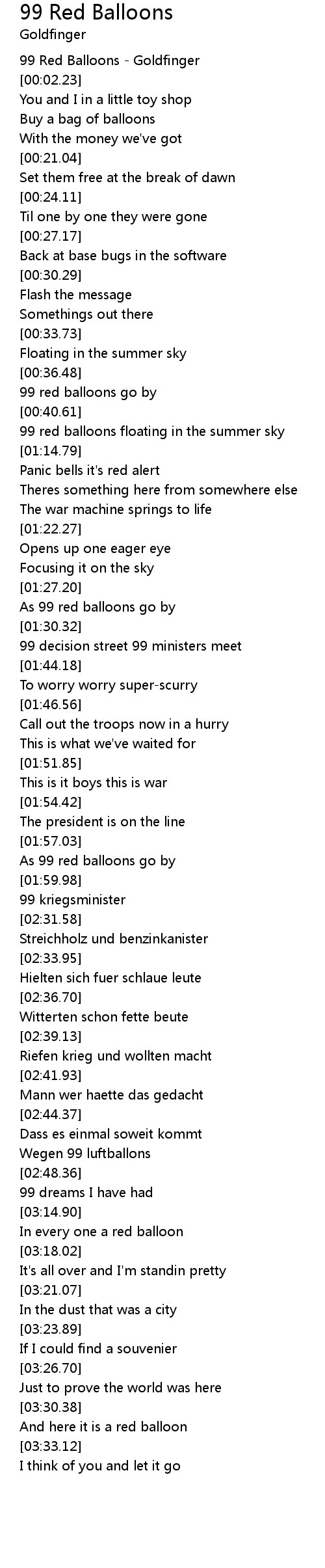 99 Red Balloons - Goldfinger |