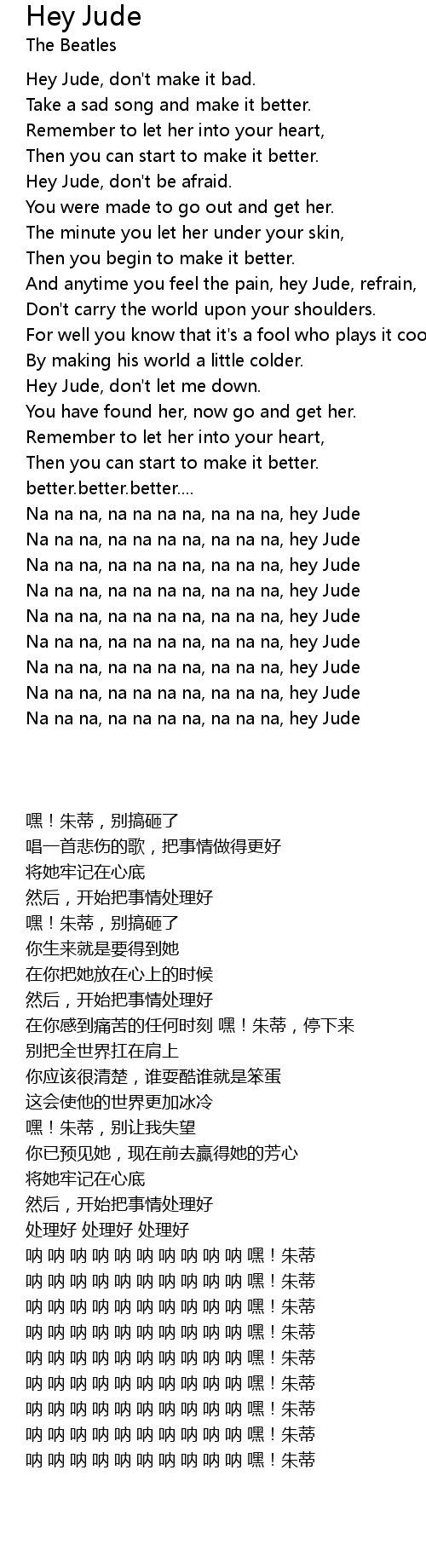 Na na na, na na na na, na na na, hey Jude |