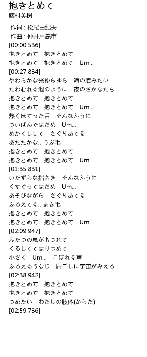 | [00:55.445] | 抱きとめて 抱きとめて Um... |