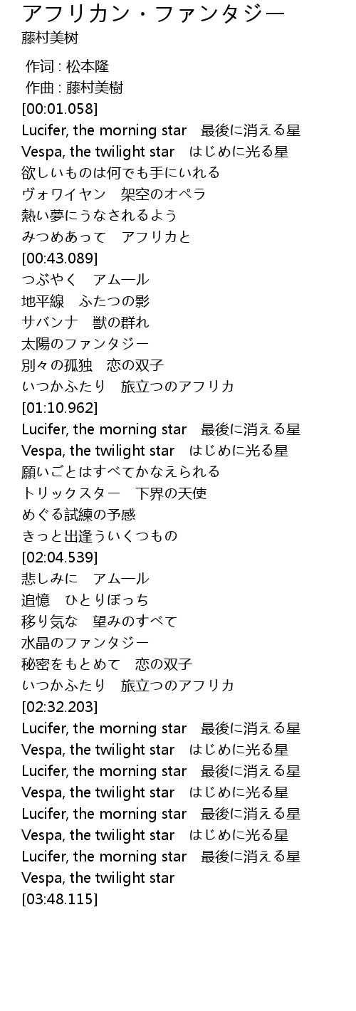 | [02:58.299] | Lucifer, the morning star 最後に消える星 |
