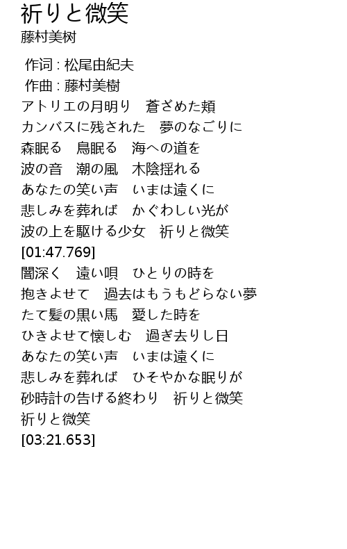 | [01:36.693] | 波の上を駆ける少女 祈りと微笑 |