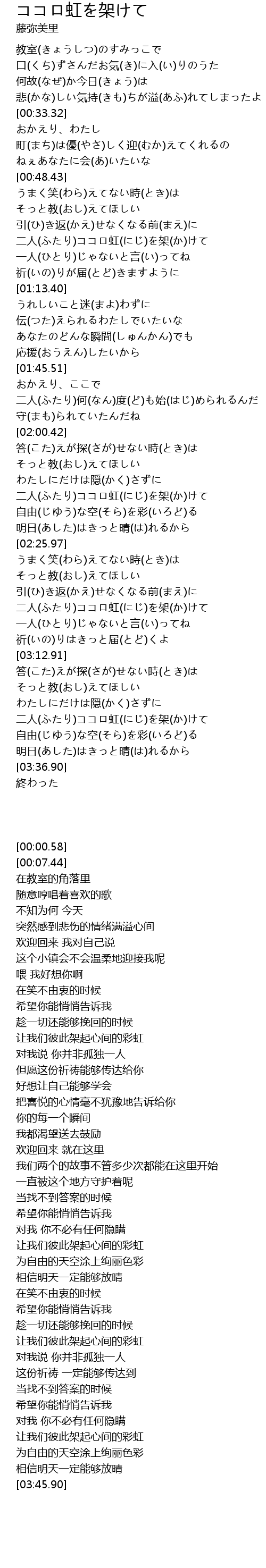 | [03:24.78] | 二人(ふたり)ココロ虹(にじ)を架(か)けて |