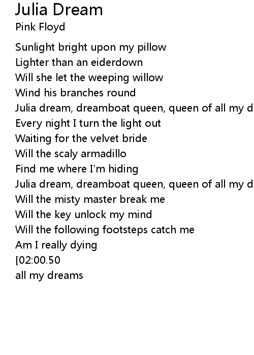 Julia dream, dreamboat queen, queen of all my dreams |