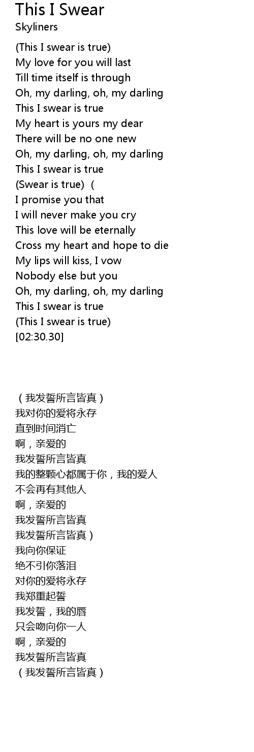 | [00:34.55] | This I swear is true |