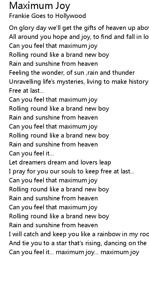 Can you feel that maximum joy |