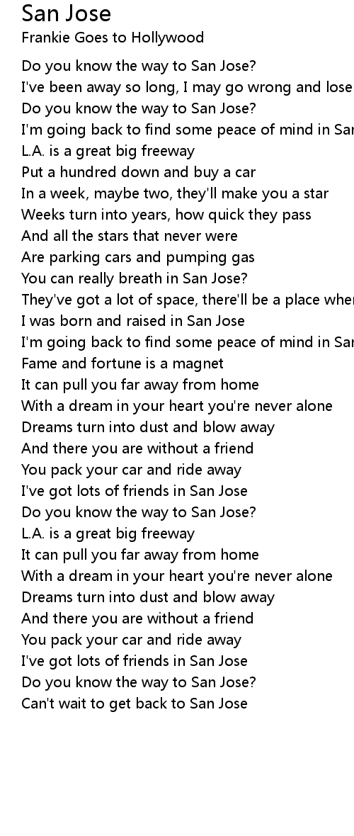Do you know the way to San Jose? |