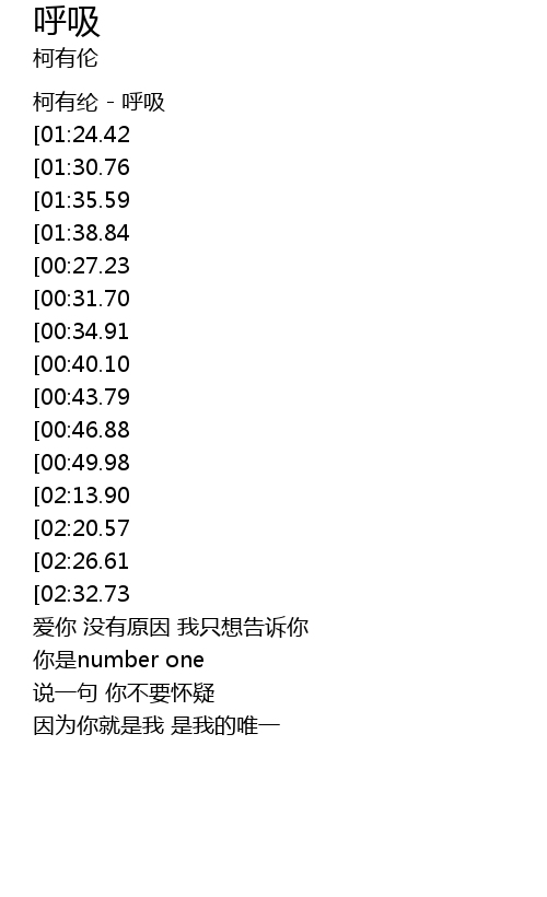 | [00:00.00] | 柯有纶 - 呼吸 |