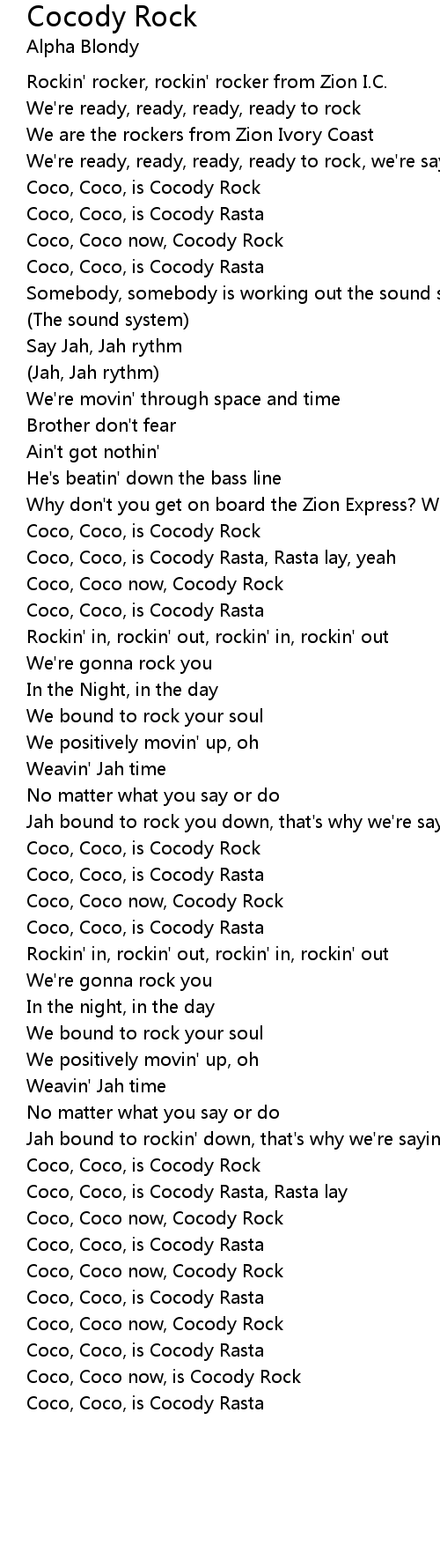 Coco, Coco, is Cocody Rasta, Rasta lay |