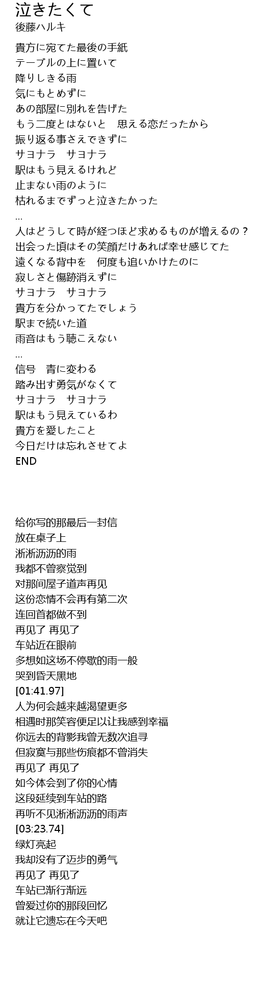 | [00:14.06] | 貴方に宛てた最後の手紙 |