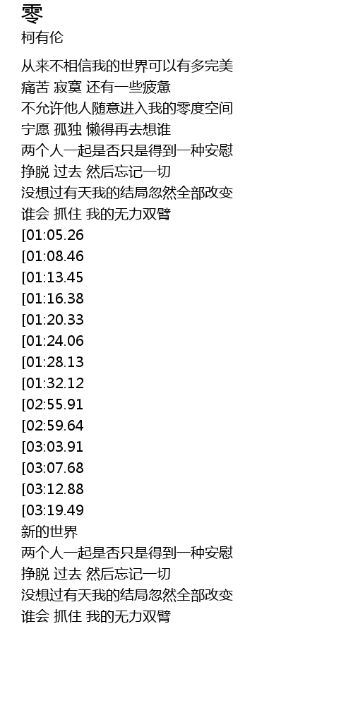[03:31.77][02:55.91][01:36.20] 走出零度空间 终于一切分裂