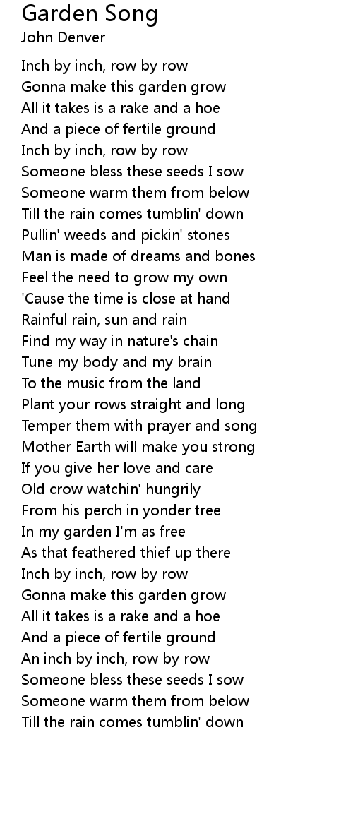 An inch by inch, row by row |