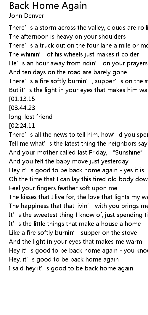 | [04:00.22] | Hey it’s good to be back home again - you know it is |