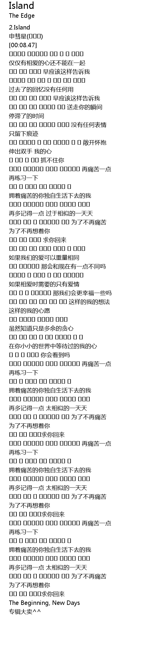 | [03:42.87] | 제발 다시 돌아와求你回来 |