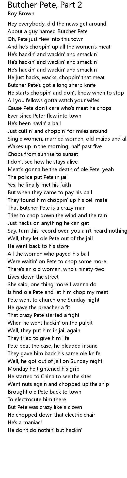 Is find ole Pete and let him chop my meat |