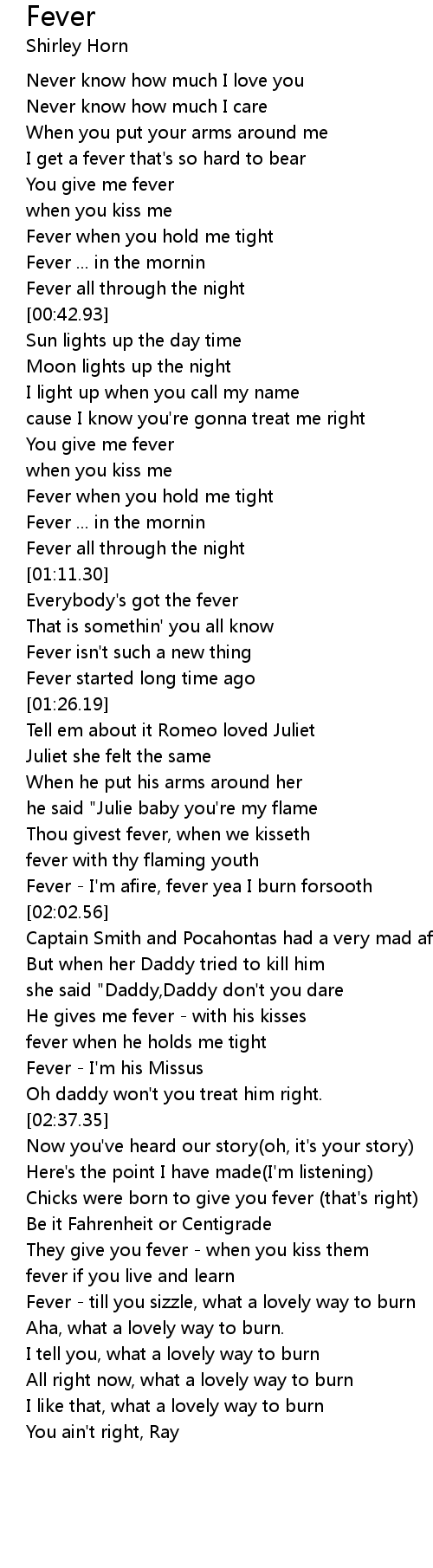 [01:54.85] Fever - I'm afire, fever yea I burn forsooth