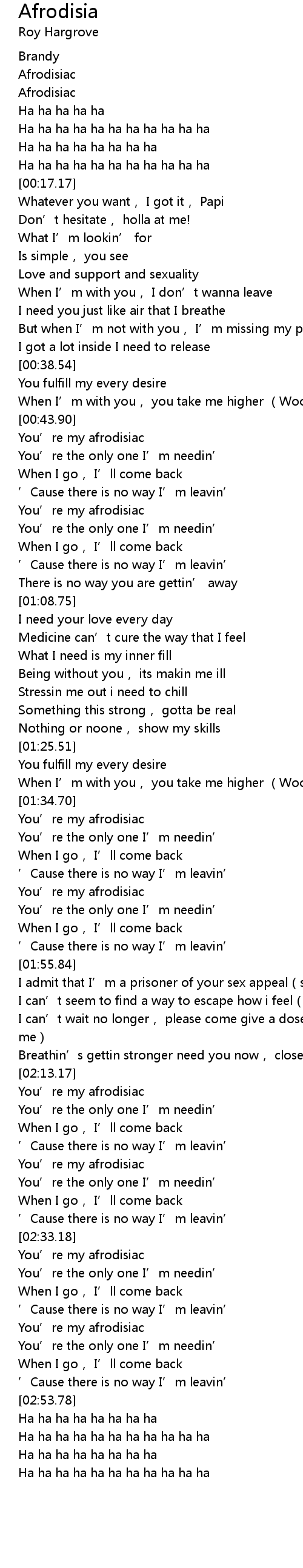| [03:04.03] | Ha ha ha ha ha ha ha ha |