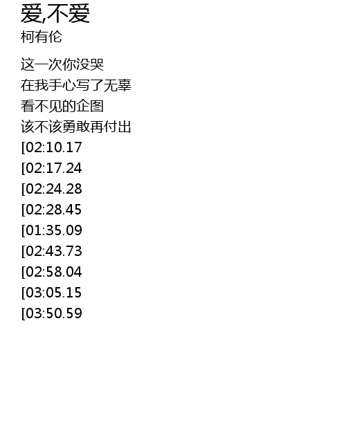 | [01:20.89][01:35.09][02:36.07][02:50.42][03:15.37][03:29.82] | ai bu ai wo huo gai |