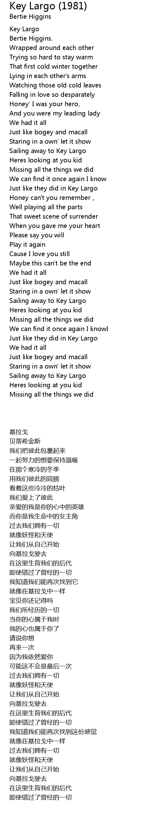 | Song | Key Largo (1981) |