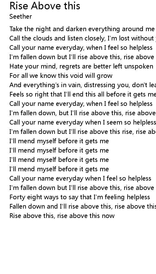 Rise above this, rise above this now |