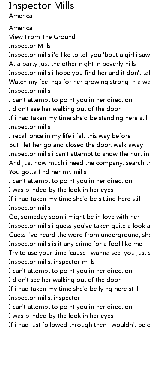 Inspector mills i'd like to tell you 'bout a girl i saw |