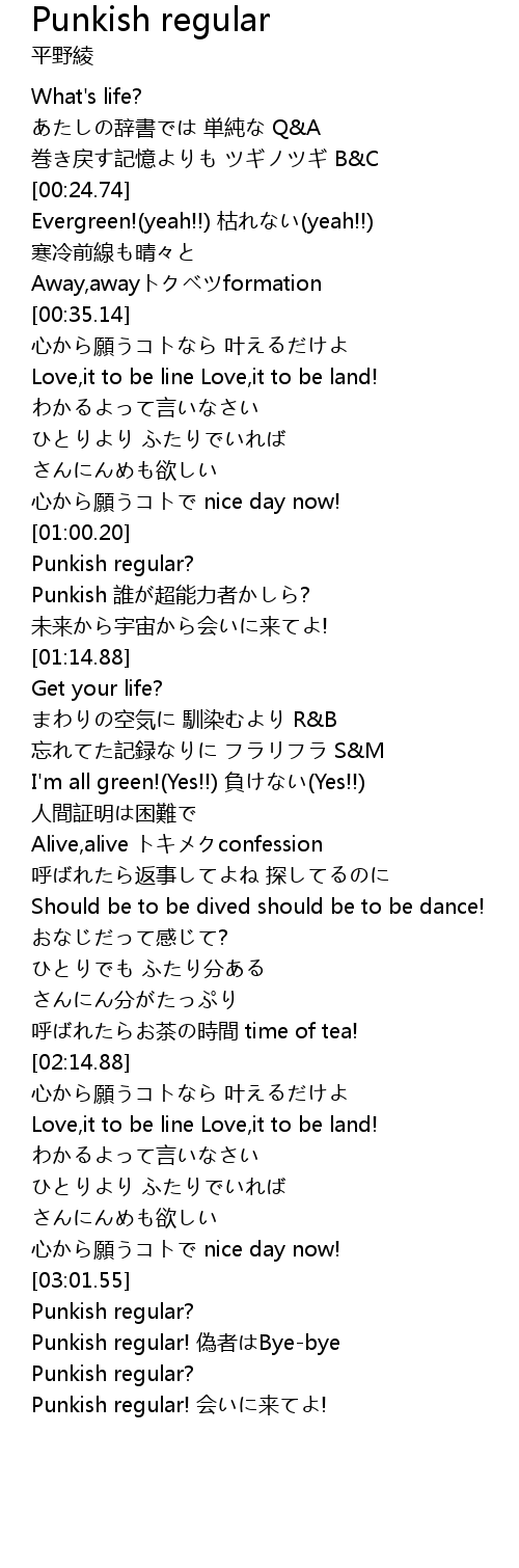 | [03:12.24] | Punkish regular! 会いに来てよ! |