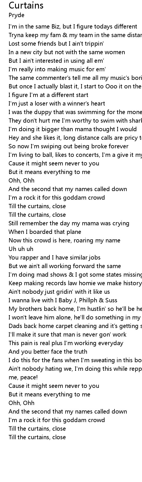 | [01:07:00] | I'm living to ball, likes to concerts, I'm a give it my all, ALL. |