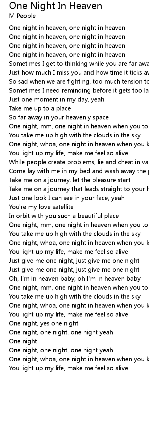 One night in heaven, one night in heaven |