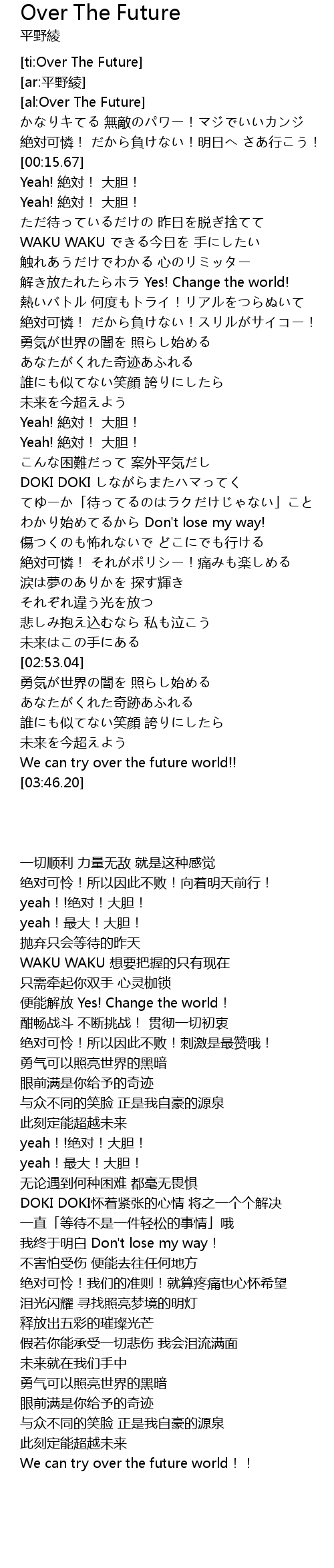 | [00:49.75] | jiě fàng Yes! Change the world! |