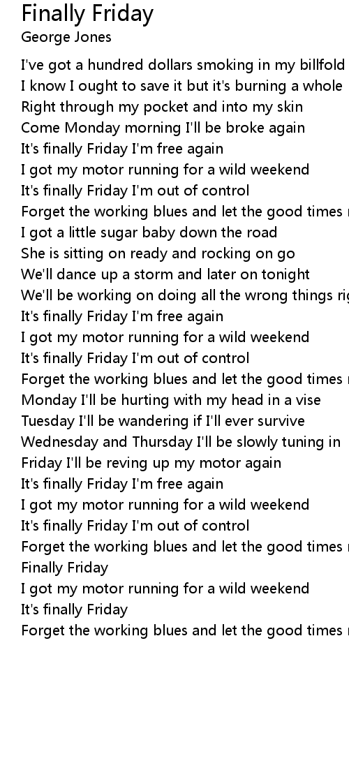 It's finally Friday I'm free again |