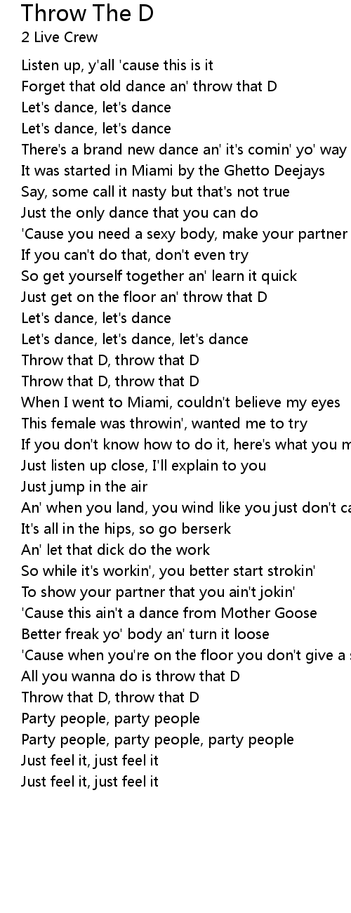All you wanna do is throw that D |