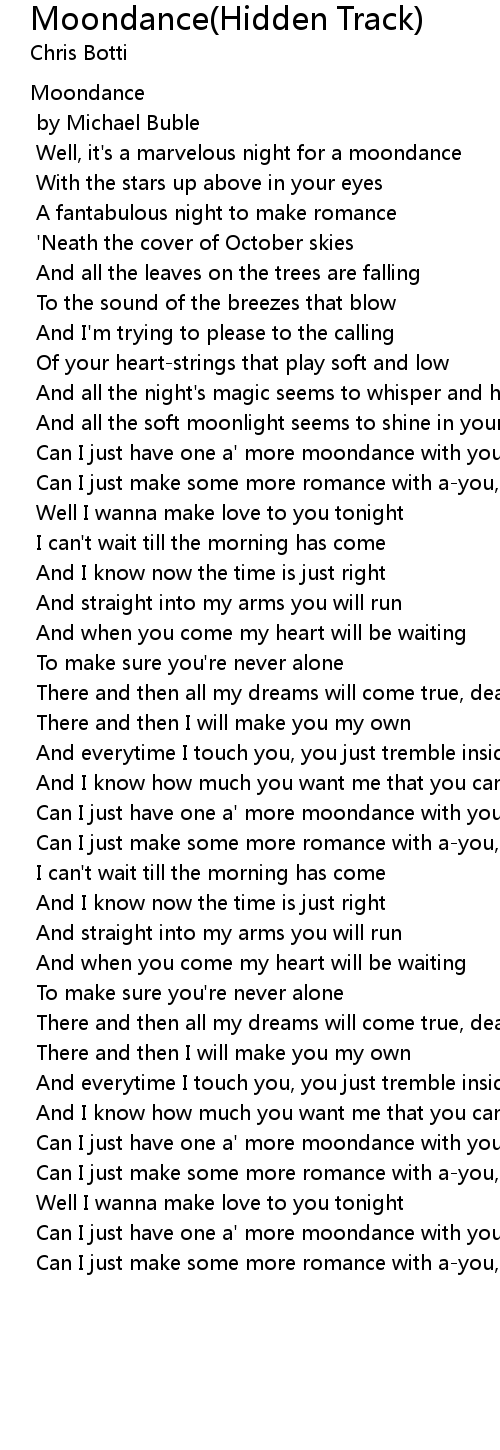 Can I just have one a' more moondance with you, my love |