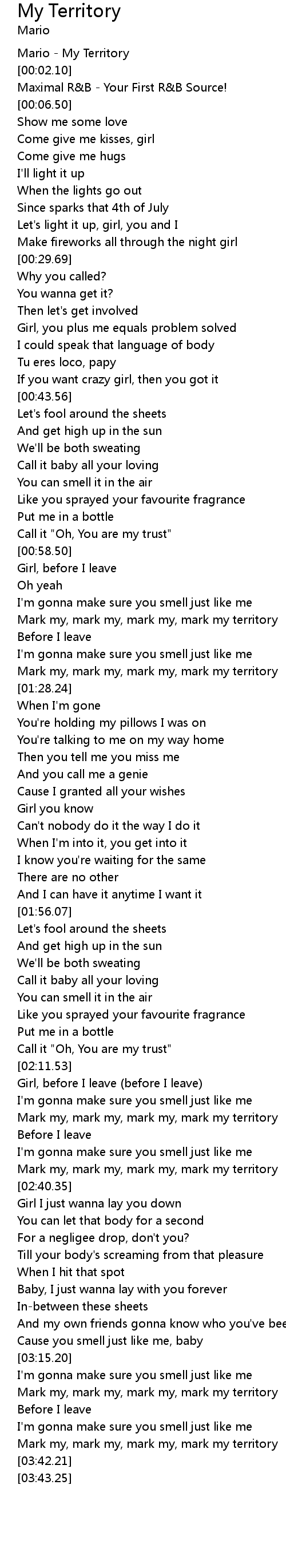 Mark my, mark my, mark my, mark my territory |