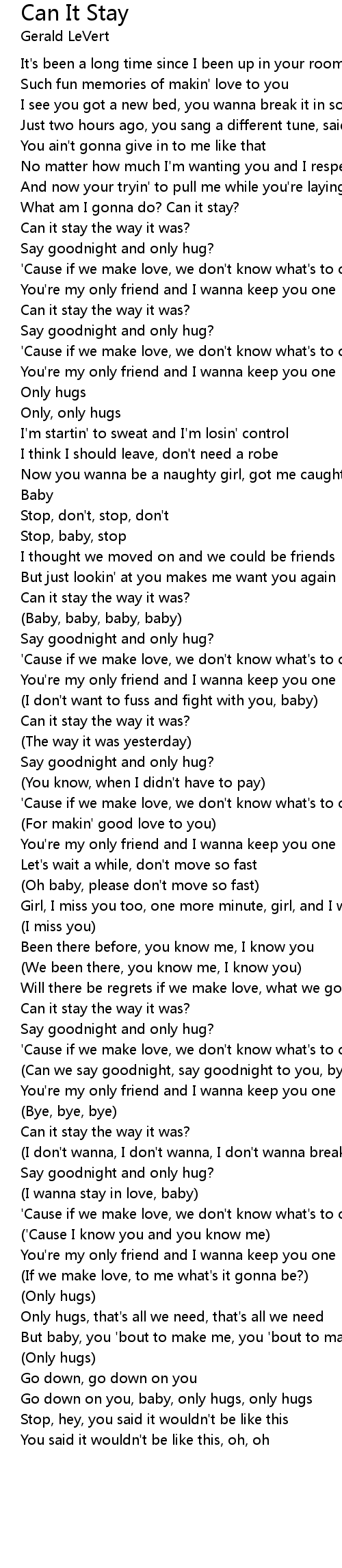 You're my only friend and I wanna keep you one |