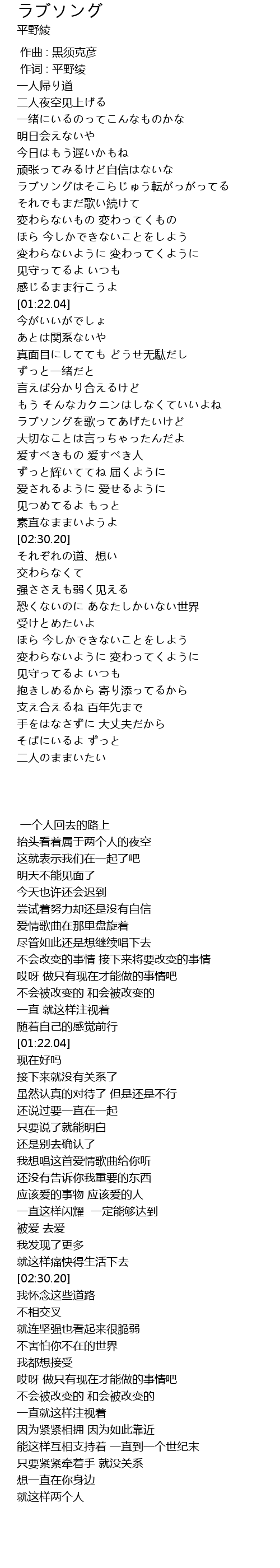 | [00:01.00] | 作词 : 平野绫 |