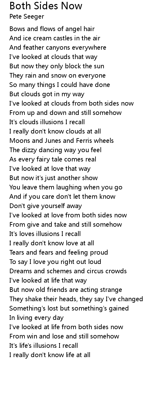 I've looked at life from both sides now |