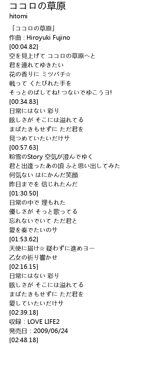 | [00:00.82] | 「ココロの草原」 |