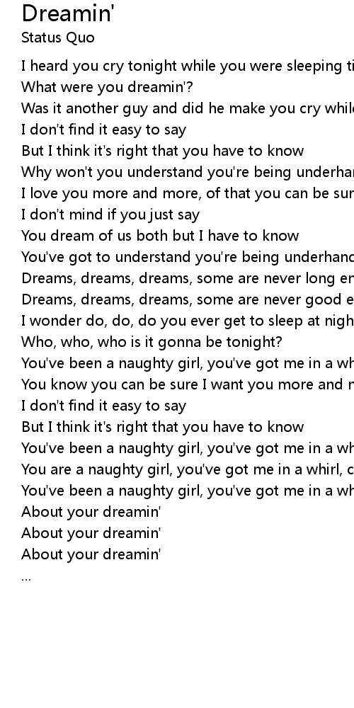 You've been a naughty girl, you've got me in a whirl about your dreamin' |