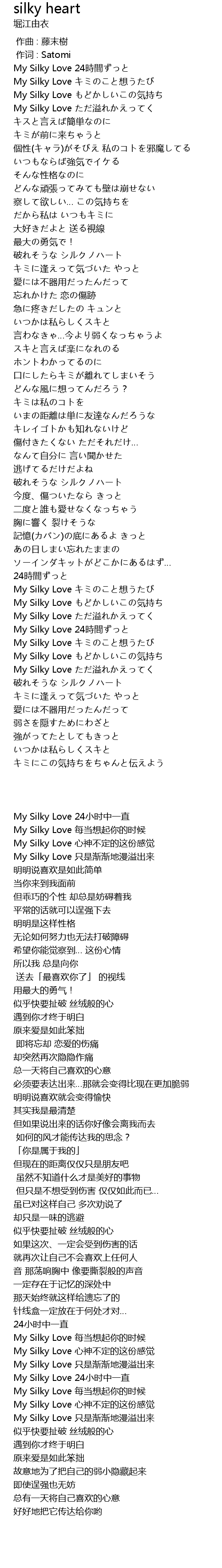 | [00:03.440] | My Silky Love 24時間ずっと |